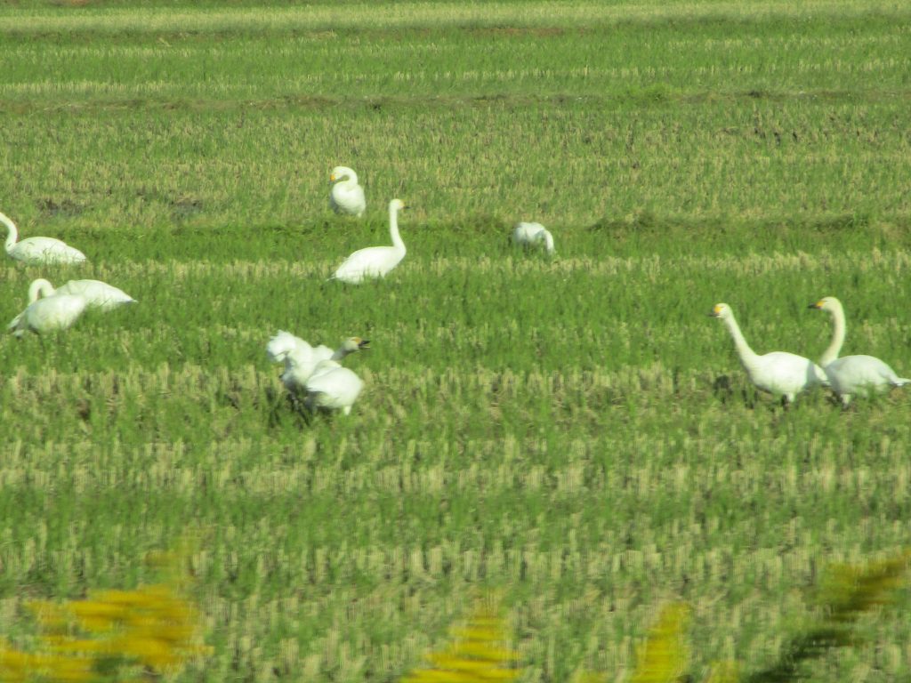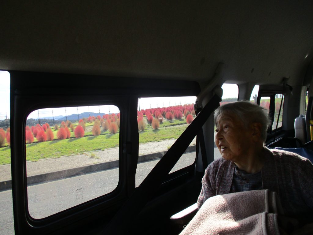 色づいたコキアや白鳥を眺め「きれいだの~」と楽しまれました